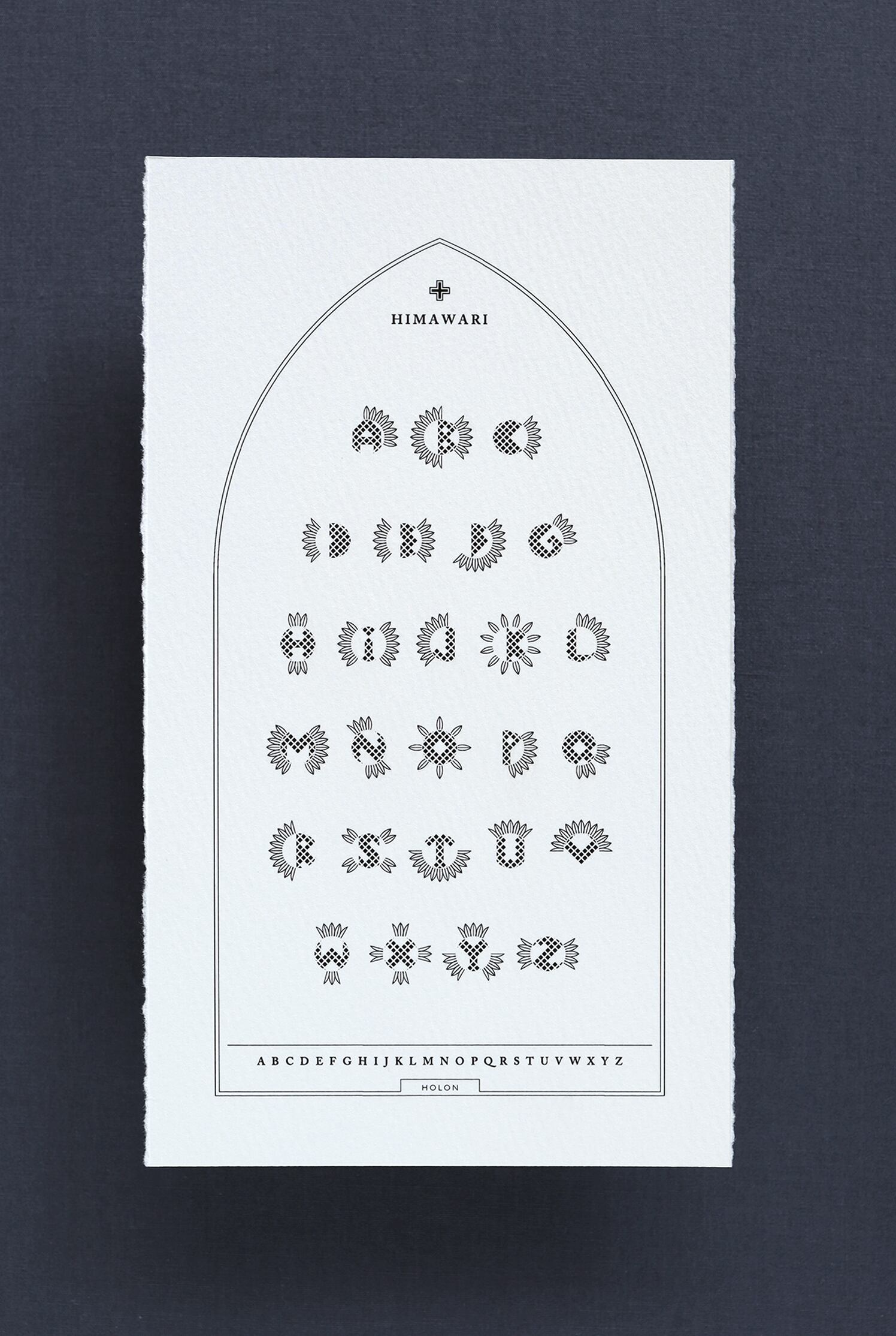 ライフワークとして取り組んでいる「装飾を重視したアルファベット書体」で構成したタイポグラフィ作品です。一見模様に見える装飾箇所が、オリジナルのアルファベット書体になっています。