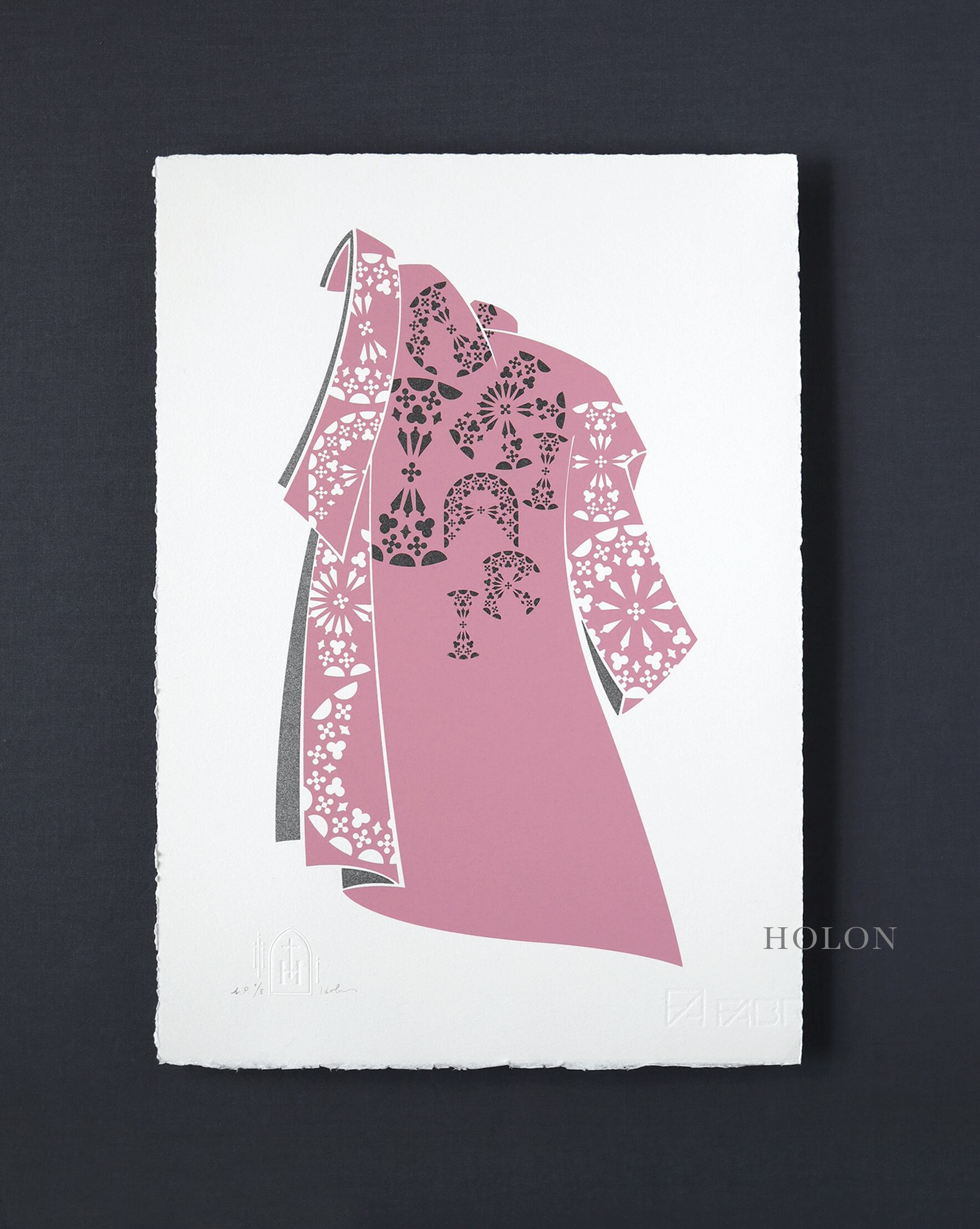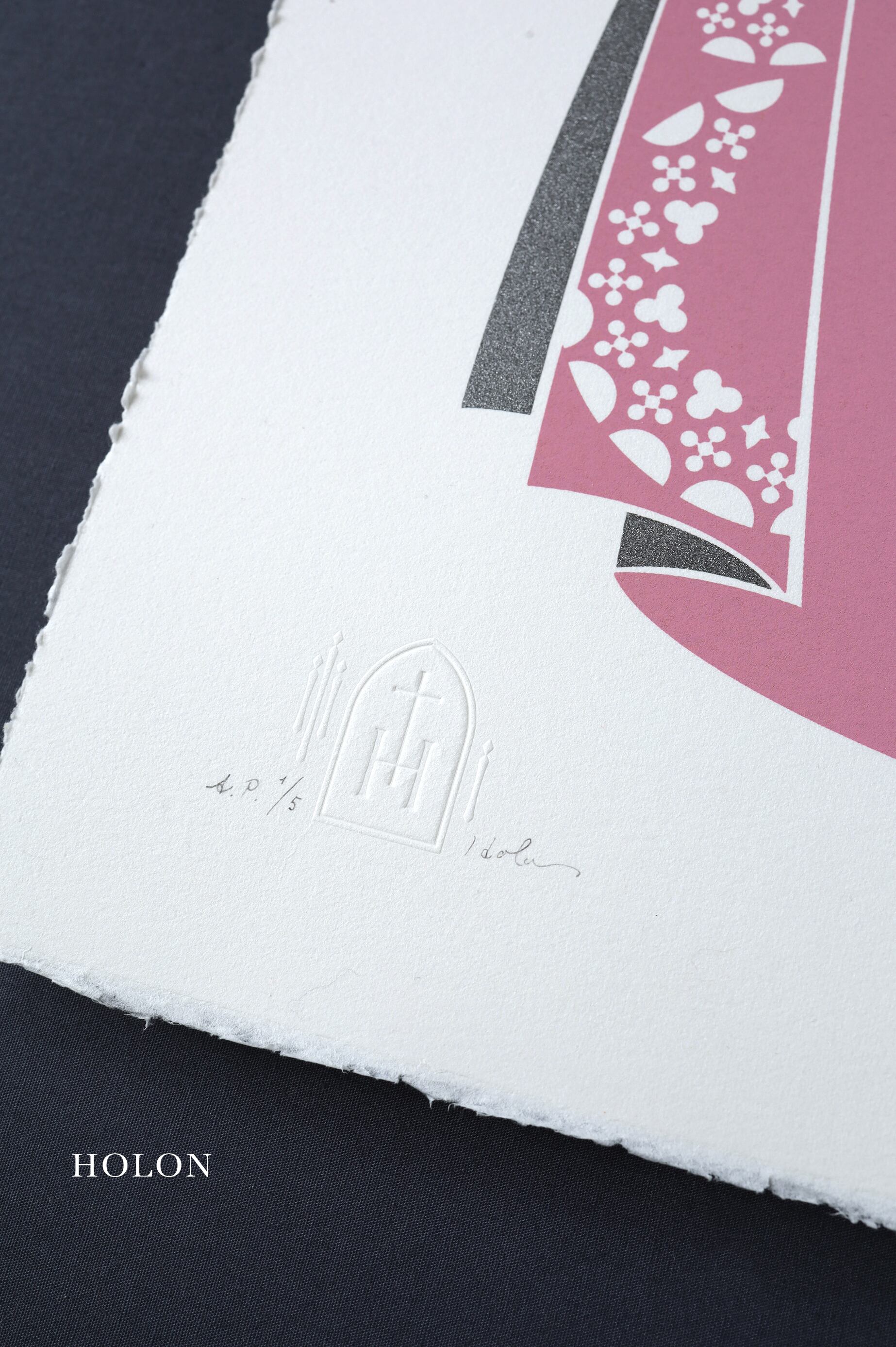 イタリアの老舗製紙ブランド「ファブリアーノ社」が誇る風合い豊かな高級紙ファブリアーノロサスピーナ紙を使用したシルクスクリーン作品です。