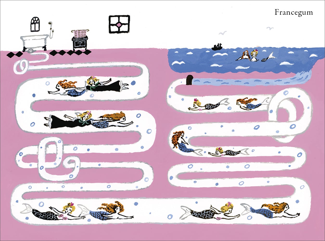 人魚に手を引かれるままに浴槽の小さな排水溝へと吸い込まれて行きました。