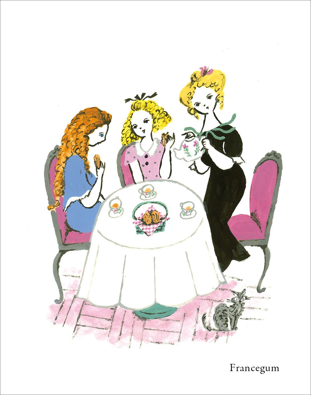貝の形をしたマドレーヌを持ってふと現れたお向かいのマドモワゼル・イリスを交えた三人のお茶も、お話に新たな展開をもたらしたようです。