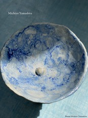 時空を超えた人魚のように、フランスの土で作られ見るたびに表情を変えるお椀。深い海の青、夜明けまえの紫、遠い昔の涙の色。お碗が描く湾の中に、いくつもの記憶がかさなり、やがて海そのもののように、ただ静かにそこに在る。