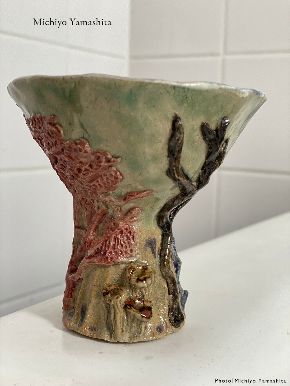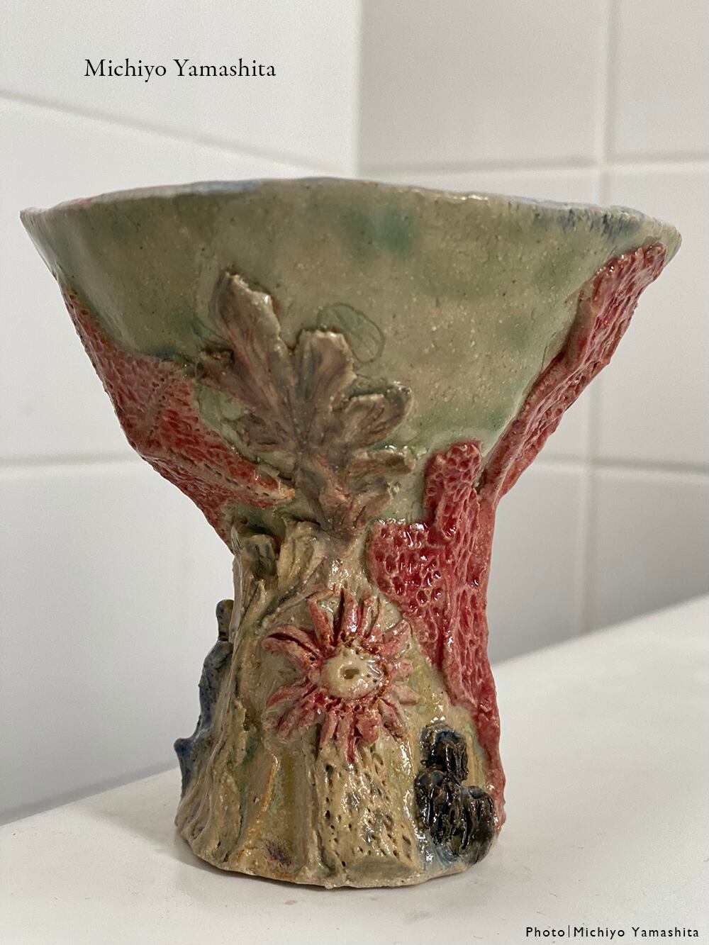 蒼い湾を宿す人魚の瞳を、そっと8つの椀に浮かべて。貝殻のふちをなぞるように、しずかに波打つ杯。山下美千代さまの作品には、風と海に導かれて生まれた眼差しが練り上げられています。夢のなかで人魚の娘が見せた、深い海の底の記憶をたどるように、ワインや紅茶をその中に浮かべて――人間の手からこぼれ落ちた神話が、そっと耳殻を震わせる。