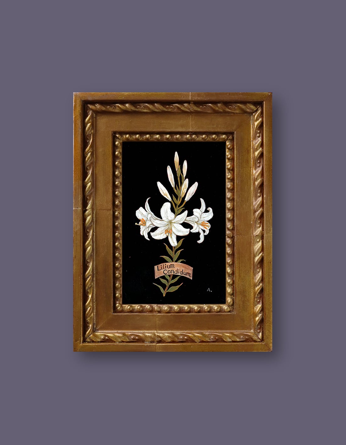額の継ぎ目が目立っていたため、作家自身が石塑粘土で修復。着彩、ニスがけしています。