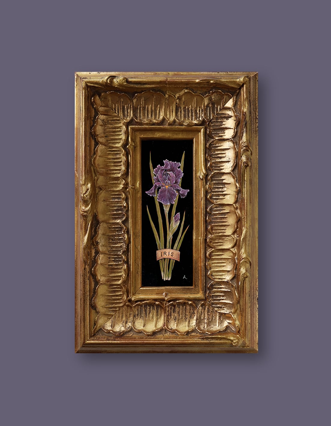 額の継ぎ目が目立っていたため、作家自身が石塑粘土で修復。着彩、ニスがけしています。