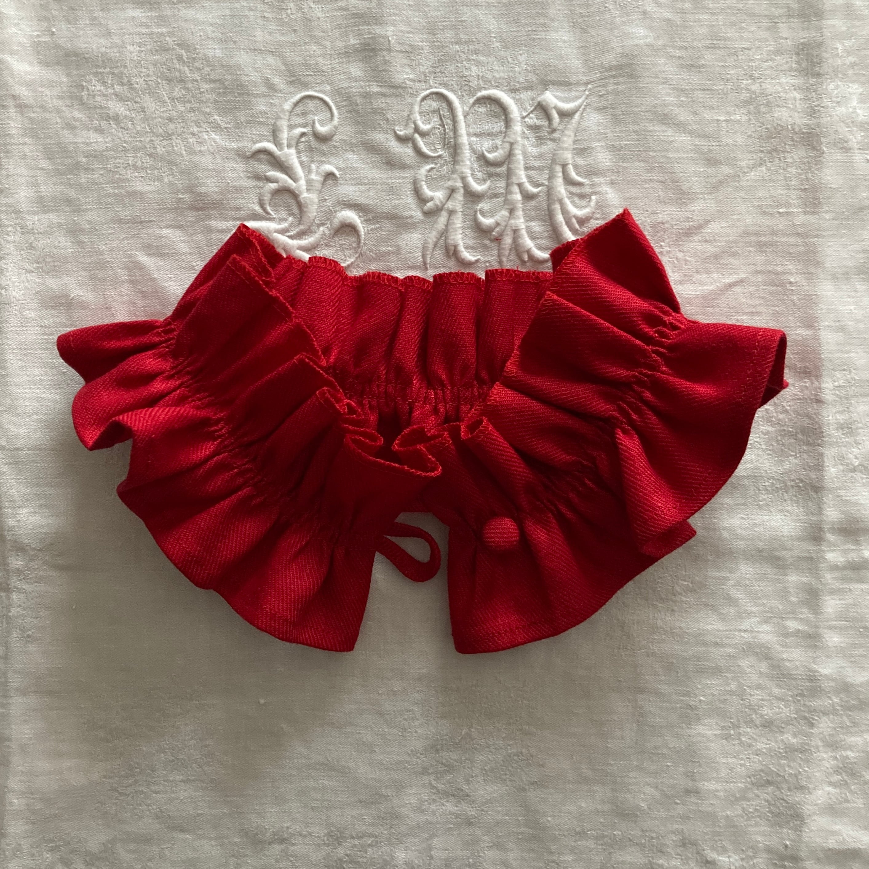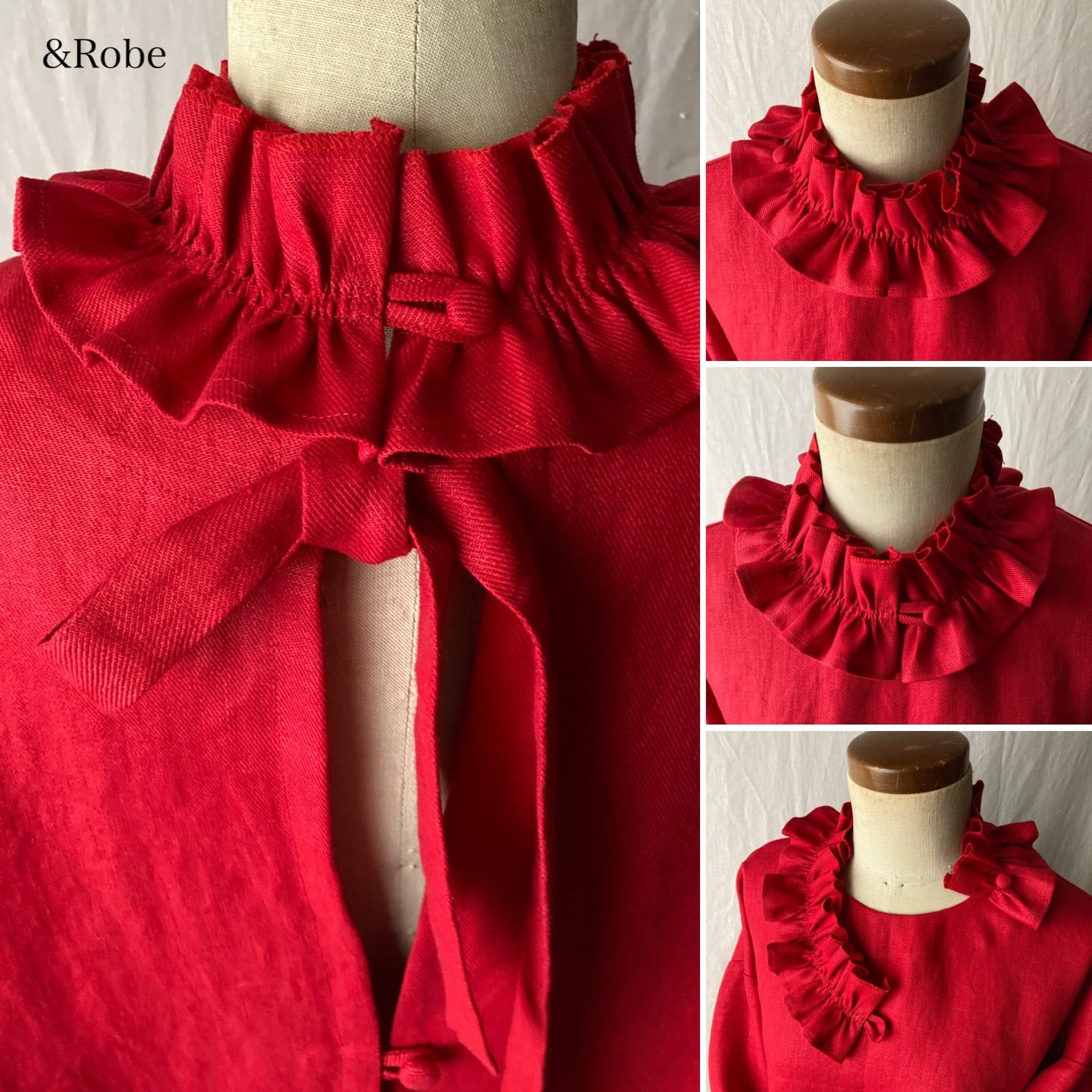 フリル襟は、なるべく首に添うよう、ご自身がお花になったように・・仕立てました。イメージを膨らませて戴けましたら、嬉しいです。