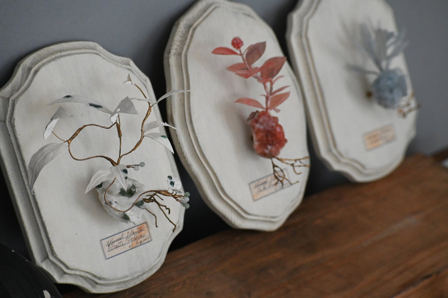 現実と空想の狭間で採集した鉱物と共生する植物の標本です。