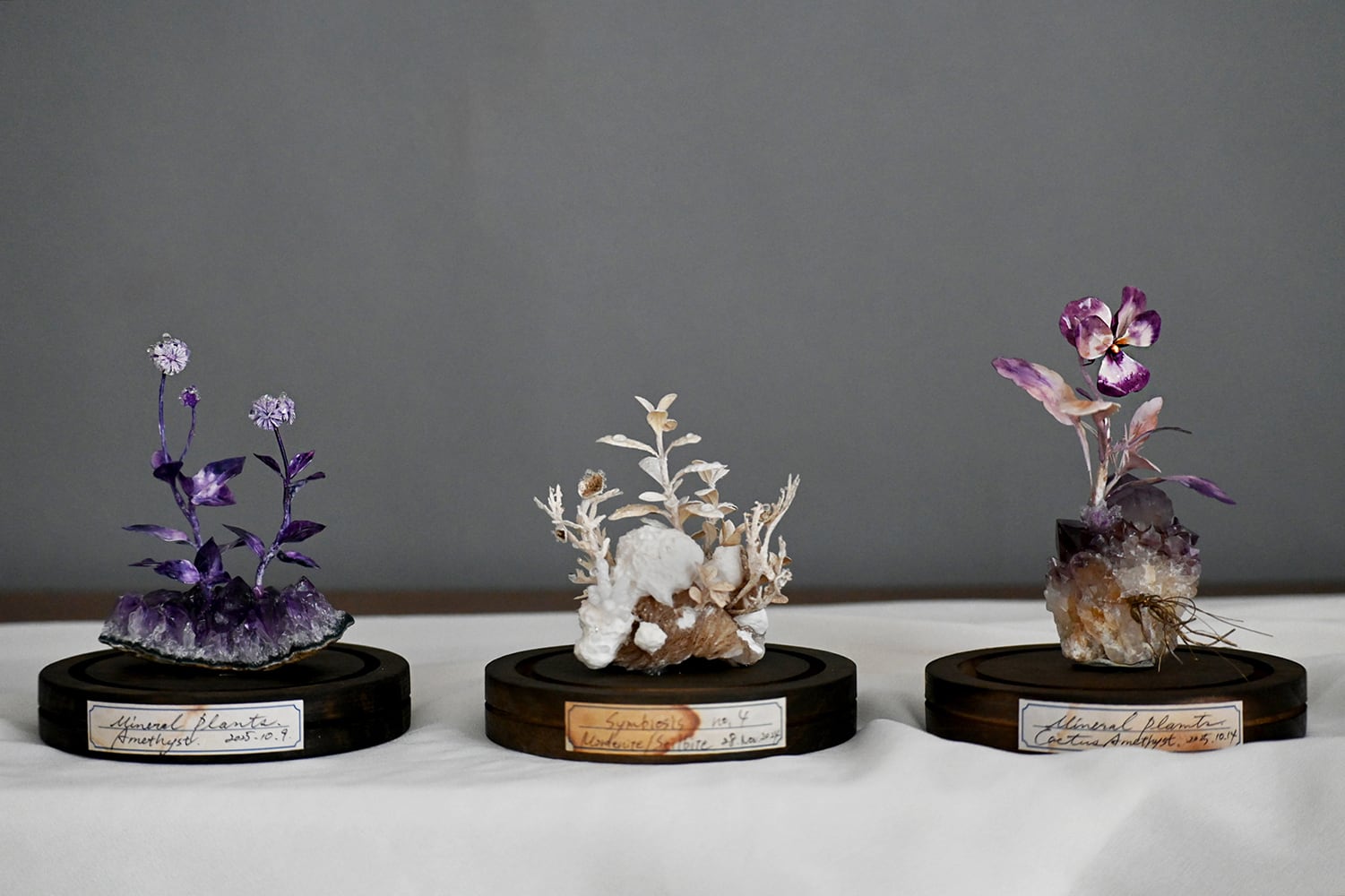 現実と空想の狭間で採集した鉱物と共生する植物の標本です。