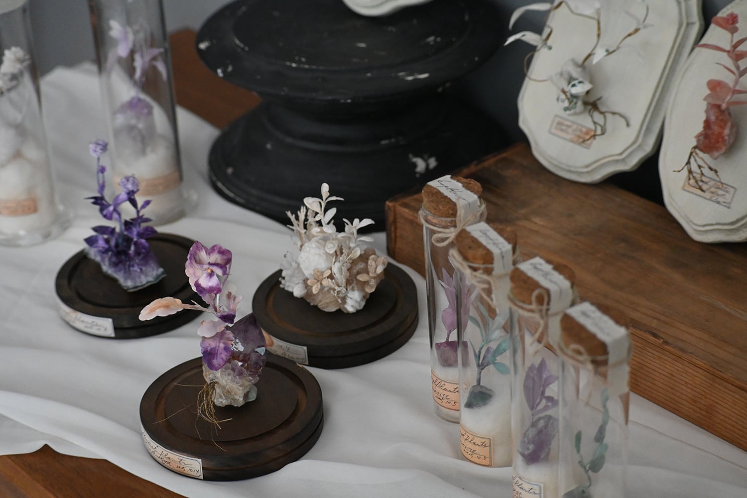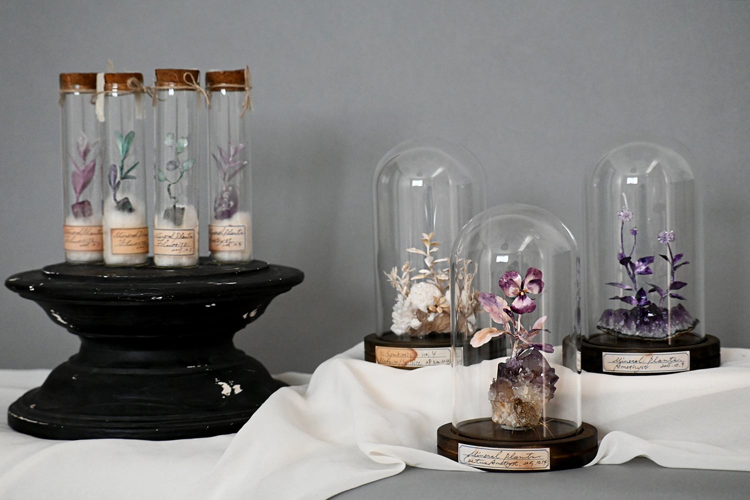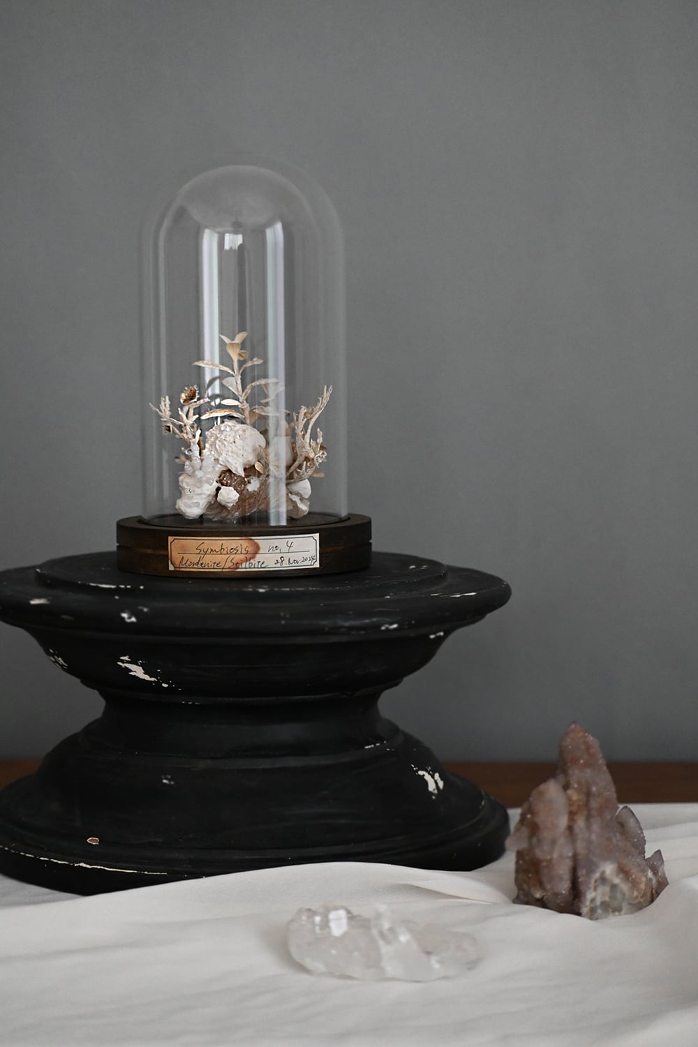 ★10〜20枚目画像には本作以外の本展出品作が含まれます。お届けする作品は《空想植物標本 モルデナイトの想い(ガラスドームS)》のみとなります。