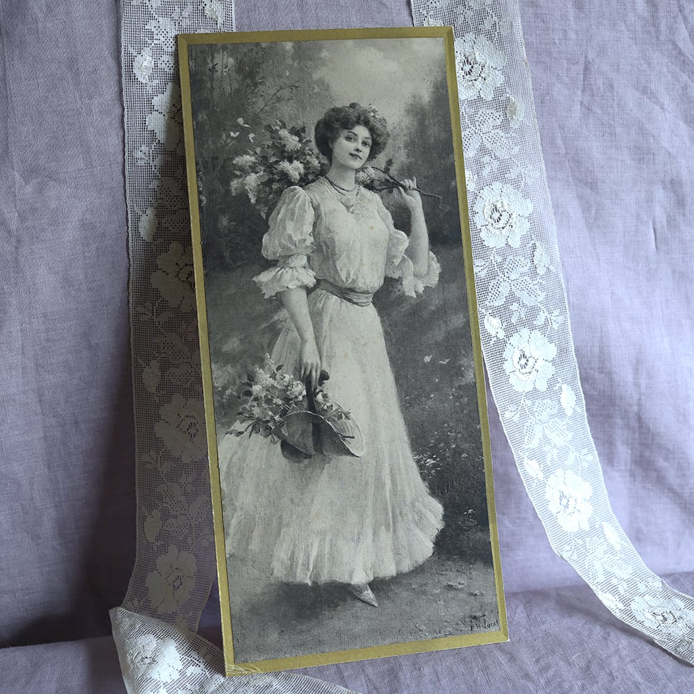 1910年前後頃、モード店の販促用カレンダーから図版部分を切抜いたお品です。