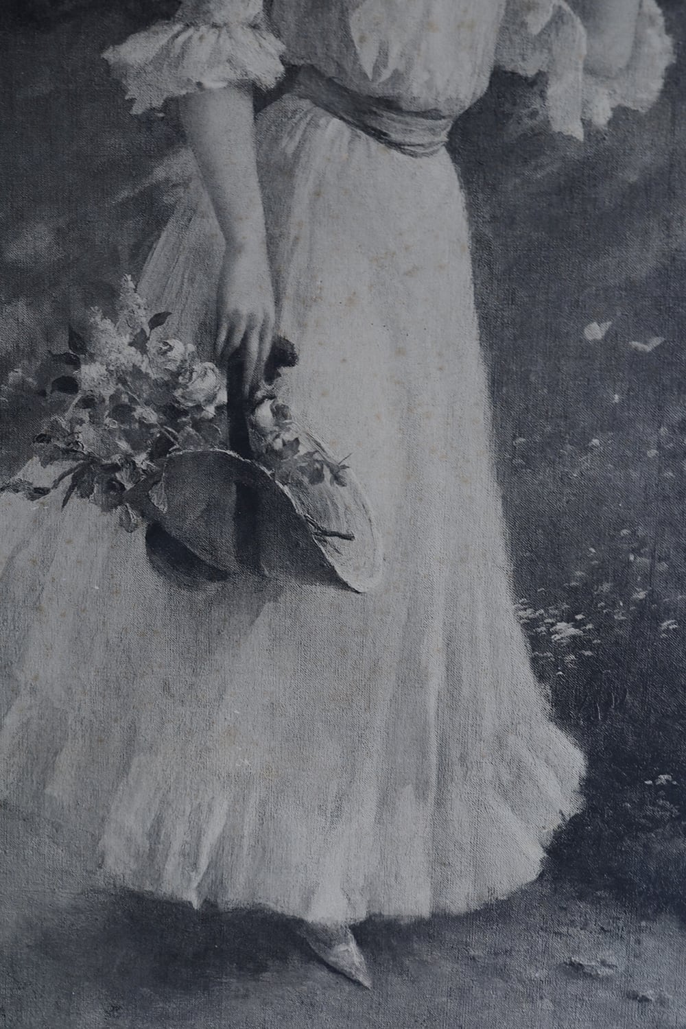 大判サイズが印象的なお品で、麦藁帽子にお花を摘む貴婦人の姿が優美です。