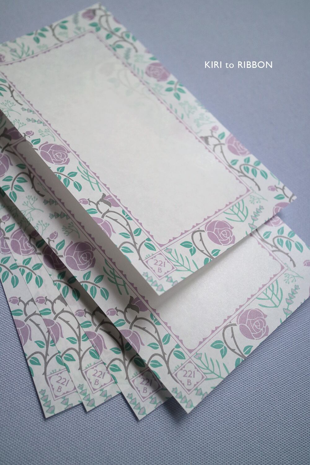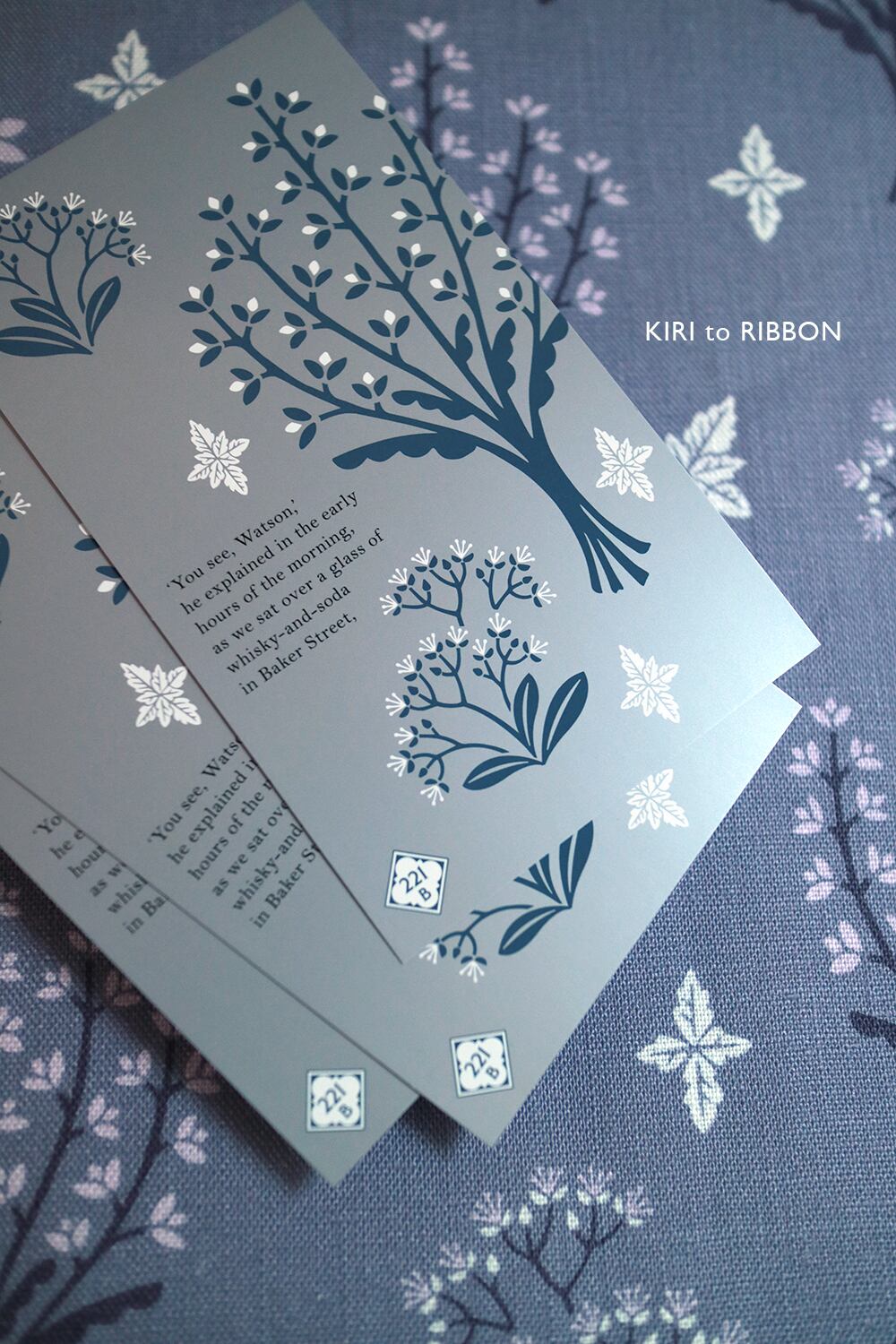 ステーショナリーの図案は、本イベントで発売する新訳付オーガニック紅茶セット《221Bシリーズ》の箱の表面に箔押しした紋章風の意匠と、221Bの室内に見立てた箱の内側(壁紙)のハーブ様とお揃いです。