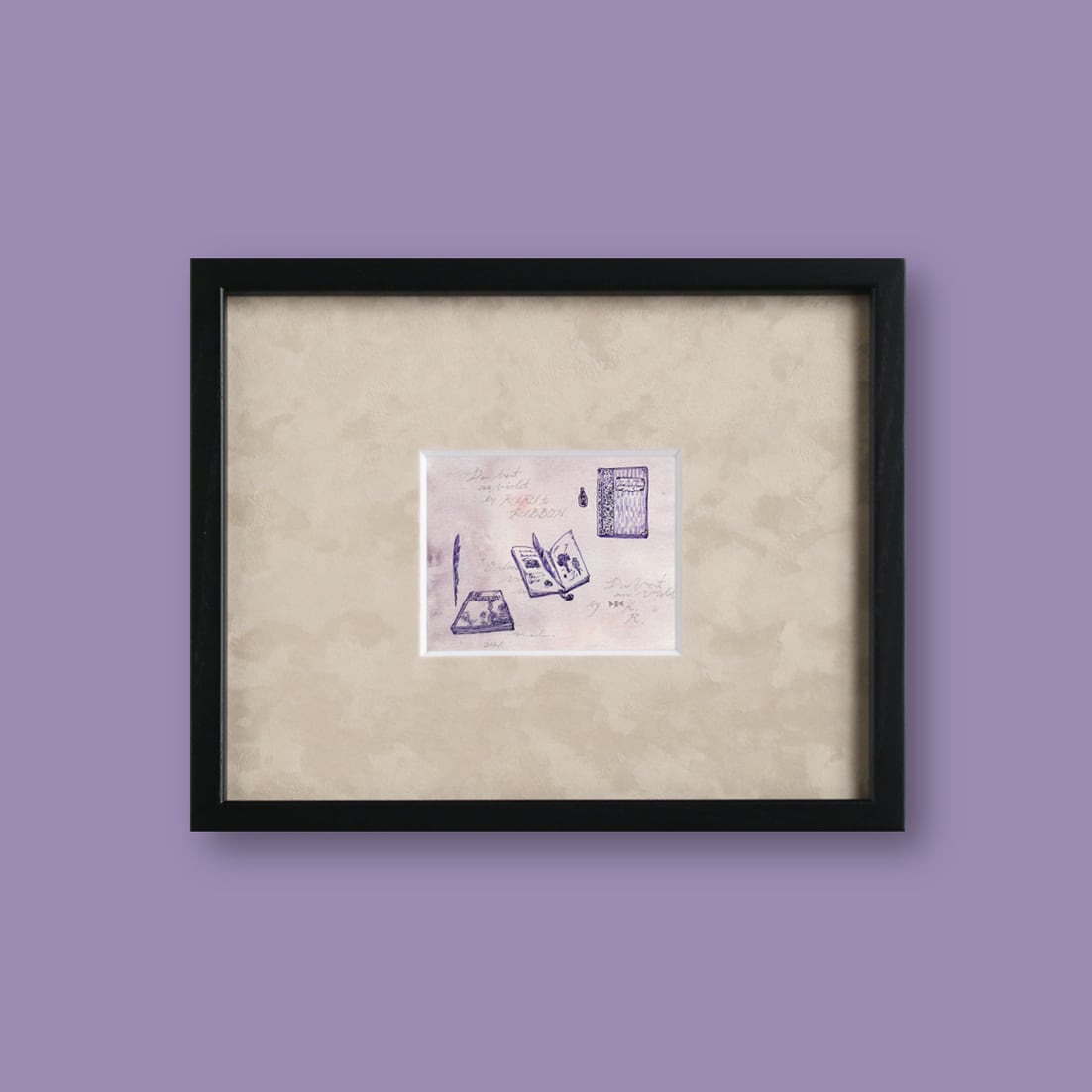本展(2021年)にてローンチした霧とリボンのポプリブランド《Du Vert au Violet》とのコラボで発表するオリジナルのトワル・ド・ジュイのために特別に描き下ろされました。