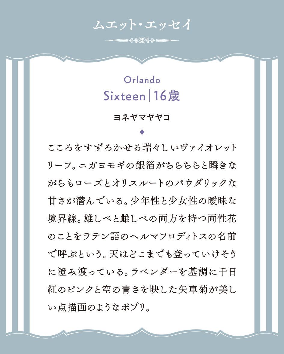 オンライン開催のため、ポプリの「香り」を皆様にご体験頂くことができません。そこで、香り選びのご参考にして頂きたく、「オンラインの試香の文法」として、香りの印象を綴る《ムエット・エッセイ》をお届け致します(18・19枚目画像)。