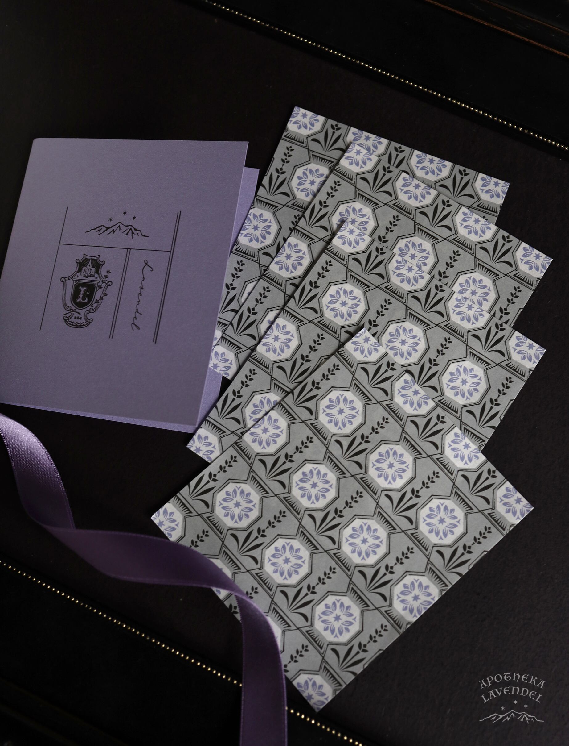 折に触れて一巻ずつ現代に届けられ、本コフレは記念すべき第一弾であり、最初の巻は「L」、つまり「ラーヘンデル|Lavendel」の巻である。巻が進むごとに、ラーヘンデル薬草香院の営みが少しずつ明らかになってゆく。